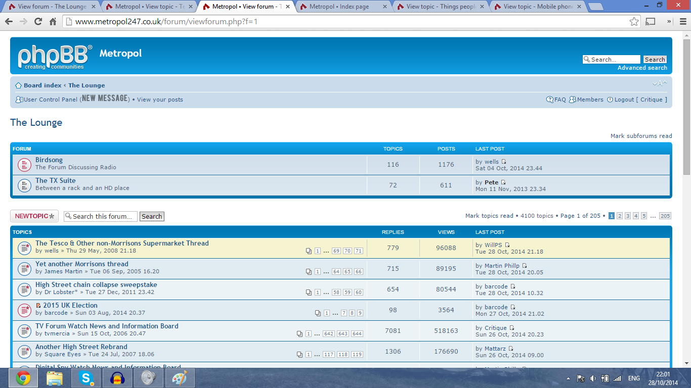 Edit: Ooh, now 'the board is unavailable' and it's changed back to a different theme with the same wider layout but with the Metropol logo present. My initial thoughts were that the old theme was just being widened but none of the background elements are there and there's a link to the Uploader in the top bar. Maybe this is just an accident, maybe this is a new theme...