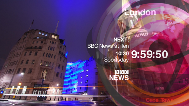 I would take away the BBC News DOG and just have the time. We know it's BBC News because we recognise the studio and the colour scheme and the newsreaders are constantly telling us we are watching BBC News.